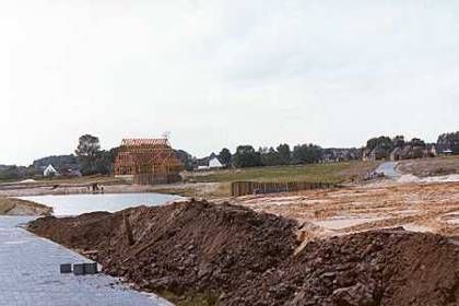 Ein See ensteht und ein Hügel wird aufgeschoben.Im Hintergrung das gerade errichtete Grundgerüst des "Spieckers". |