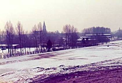 Blick auf das Stadtzentrum im Jahre 1978. In der rechten Bildmitte ist die Losbergschule zu erkennen. Das Stadtbild wird überragt vom Turm der St.Otger-Kirche. |