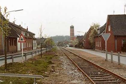 Die alte Eisenbahnstrecke aufgenommen von der B 70 aus in Richtung St. Josef Kirche. |