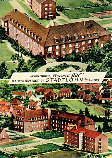 Auf dieser Postkarte ist das Krankenhaus Maria Hilf zu sehen.