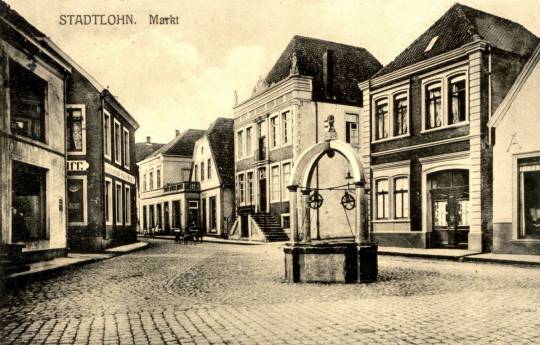 Das Alte Rathaus mit Marktbrunnen, heute erinnerteine Tafel an den Standort des Brunnens. Durch klicken auf das Bild, können Sie den Markt im Jahr 2002 betrachten.